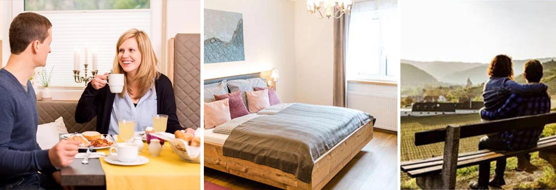 Erwartet Sie von 08:00 – 10:00 Uhr in unserem Frühstücksraum. Umrandet wird das Buffet natürlich vom Original Wachauer Laberl® von der Bäckerei Schmidl in Dürnstein und mit hausgemachter Marillenmarmelade.